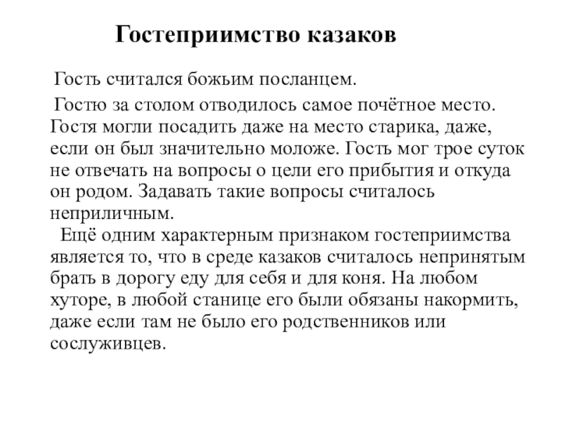 Гостеприимство казаков