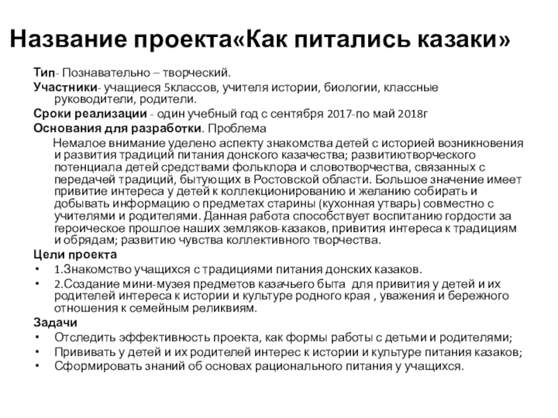 Название проекта«Как питались казаки»