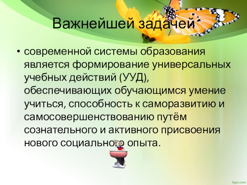обучающимся умение учиться, способность к саморазвитию и самосовершенствованию путём сознательного и активного присвоения нового социального опыта.