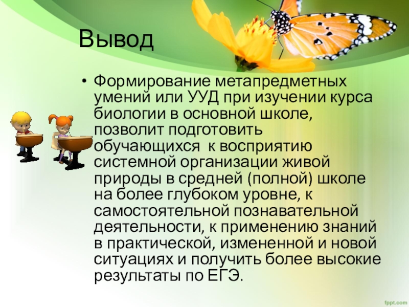 Формирование метапредметных умений или УУД при изучении курса биологии в основной