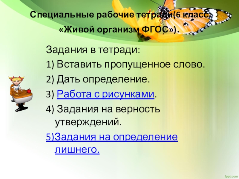 Слайд 21Специальные рабочие тетради(6 класс «Живой организм ФГОС»).