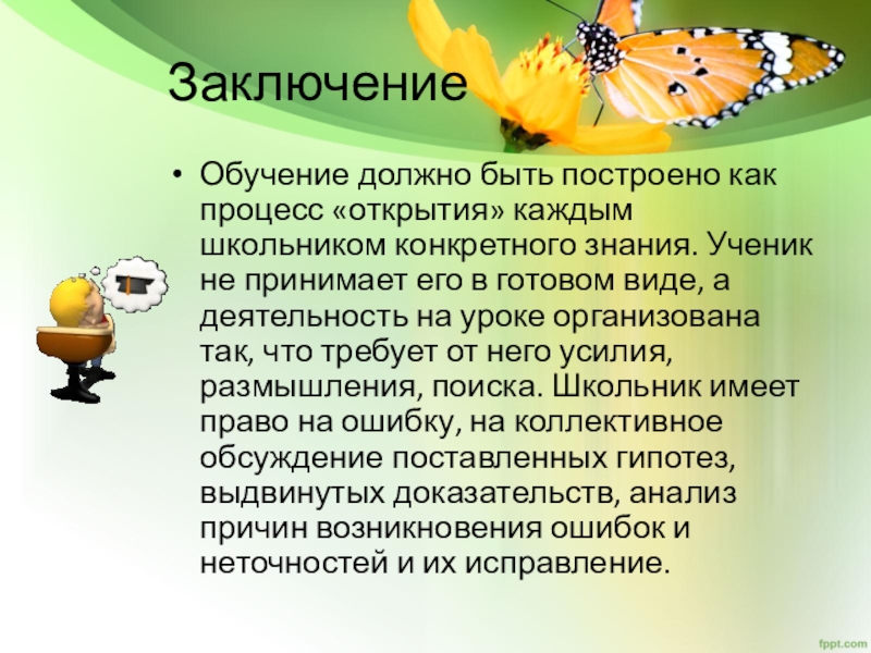 Обучение должно быть построено как процесс «открытия» каждым школьником конкретного знания.