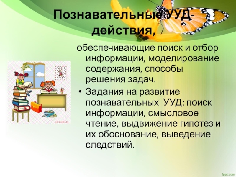 на развитие познавательных УУД: поиск информации, смысловое чтение, выдвижение гипотез и их обоснование, выведение следствий.