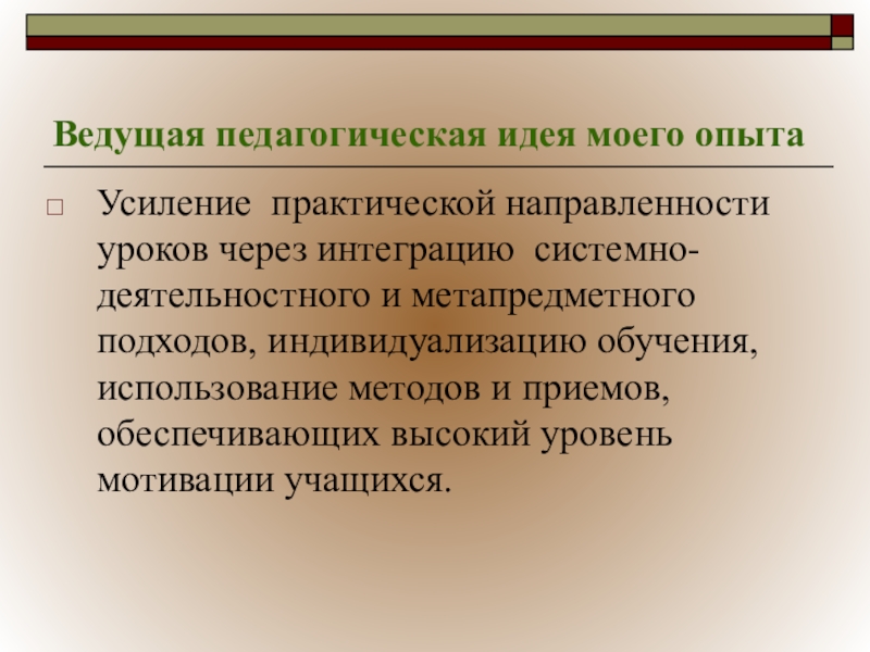 Слайд 4Ведущая педагогическая идея моего опыта