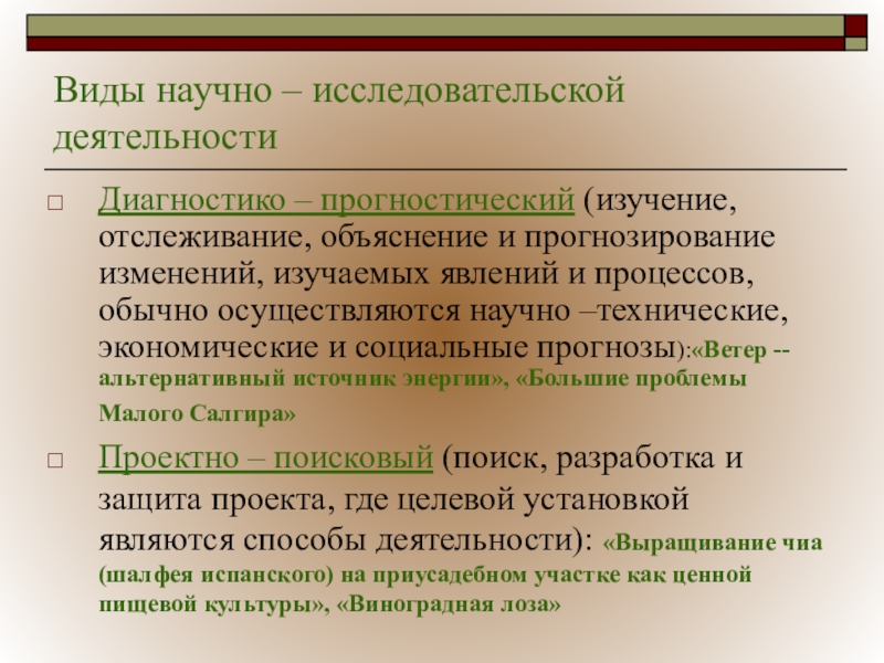Слайд 7Виды научно – исследовательской деятельности