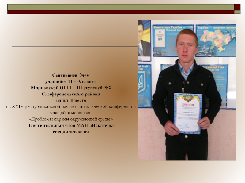 ученической олимпиады по экологии - 2 место (11 класс), 2013 г.