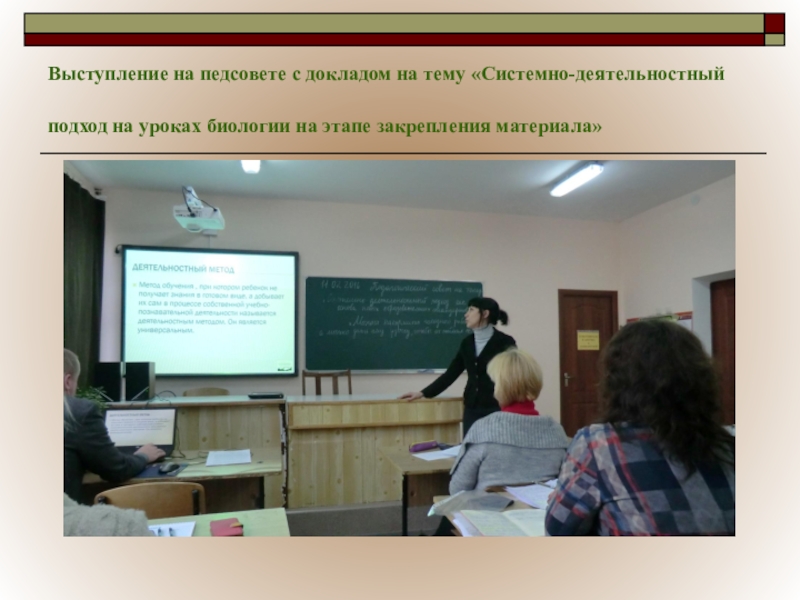 Слайд 33Выступление на педсовете с докладом на тему «Системно-деятельностный подход на уроках