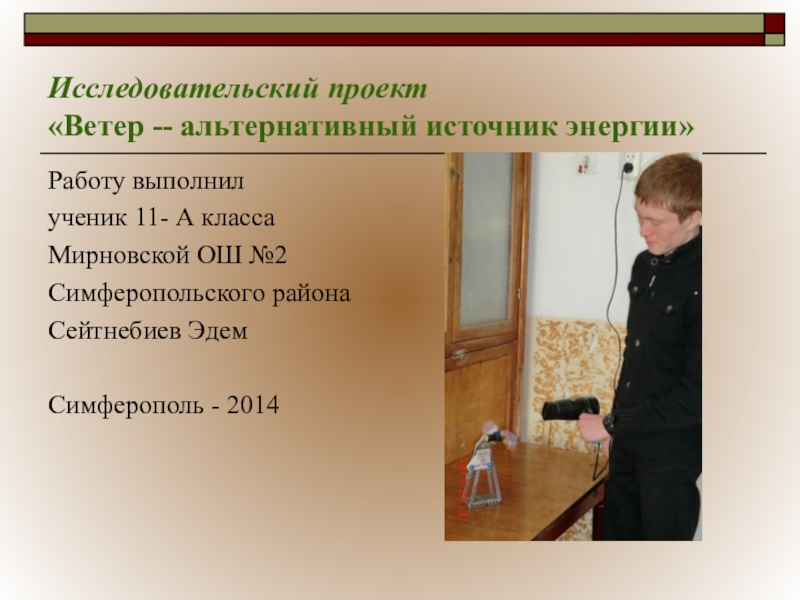 прогнозирование изменений, изучаемых явлений и процессов, обычно осуществляются научно –технические, экономические и социальные прогнозы):«Ветер -- альтернативный источник энергии», «Большие проблемы Малого Салгира»
