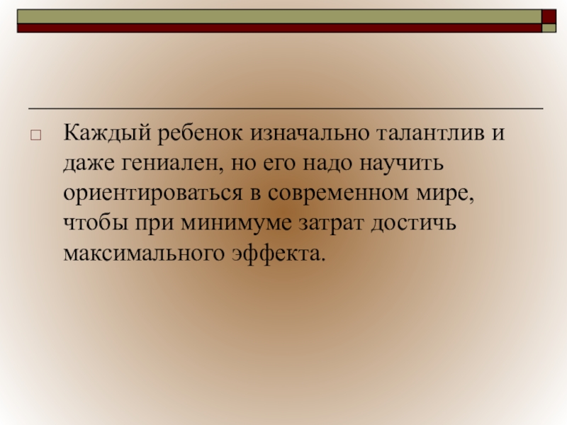 Каждый ребенок изначально талантлив и даже гениален, но его надо научить