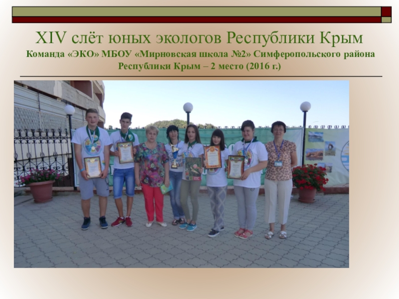 Слайд 30XIV слёт юных экологов Республики Крым Команда «ЭКО» МБОУ «Мирновская школа