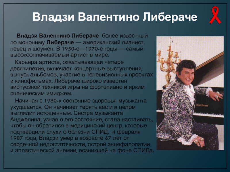 Одним из первых знаменитых людей, умерших от СПИДа, стал американский