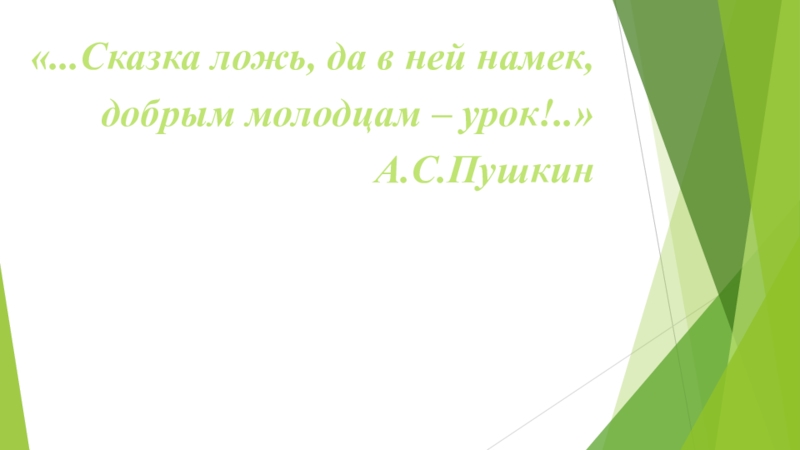 «...Сказка ложь, да в ней намек,добрым молодцам – урок!..»А.С.Пушкин