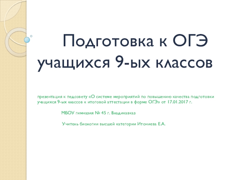 педсовету «О системе мероприятий по повышению качества подготовки учащихся 9-ых классов к итоговой аттестации в форме ОГЭ» от 17.01.2017 г.