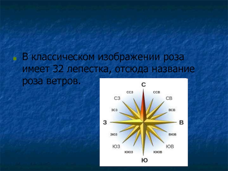 В классическом изображении роза имеет 32 лепестка, отсюда название роза ветров.