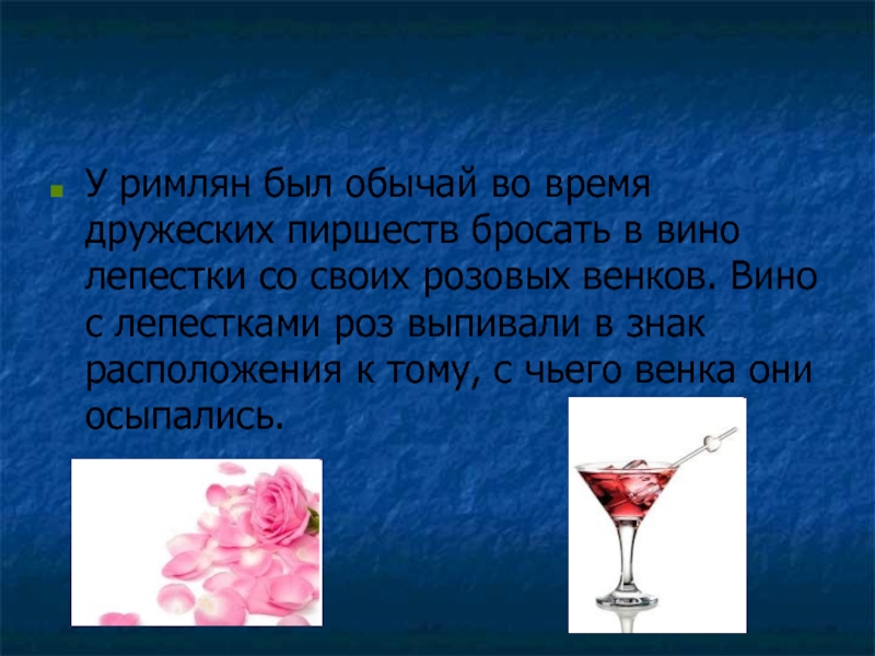 У римлян был обычай во время дружеских пиршеств бросать в вино