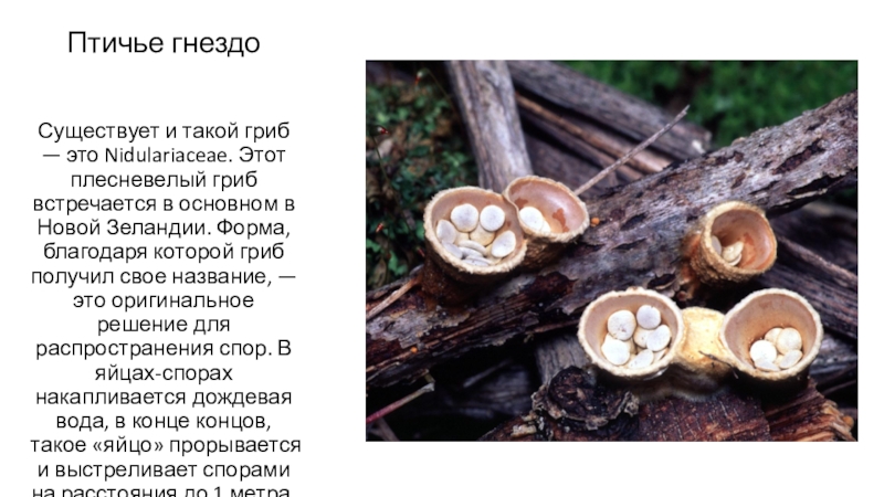 Существует и такой гриб — это Nidulariaceae. Этот плесневелый гриб