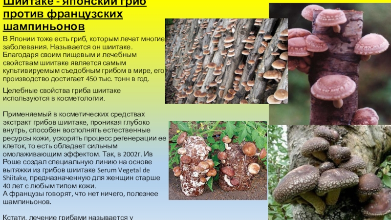 Слайд 12Шиитаке - японский гриб против французских шампиньонов