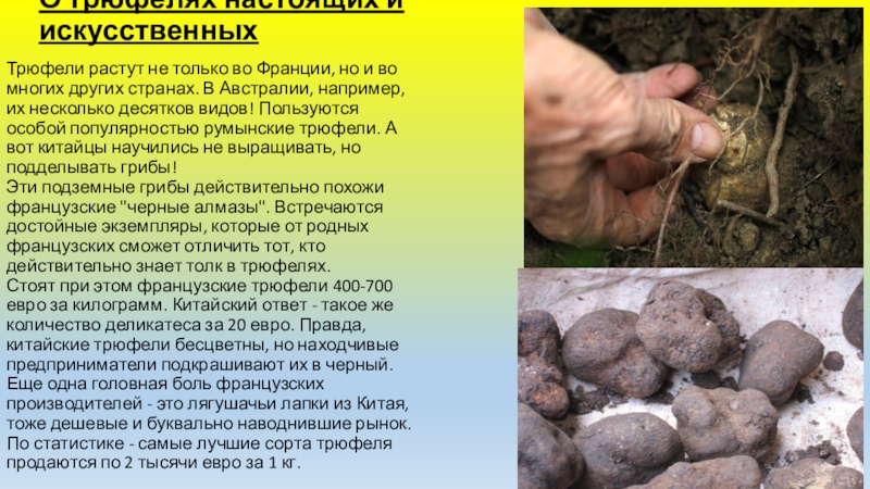 Слайд 7О трюфелях настоящих и искусственных