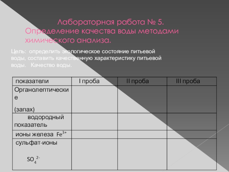 Цель: определить экологическое состояние питьевой воды, составить качественную характеристику питьевой воды. Качество воды.