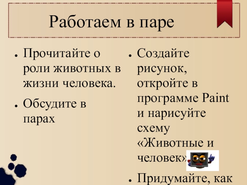 Создайте рисунок, откройте в программе Paint и нарисуйте схему «Животные и человек».
