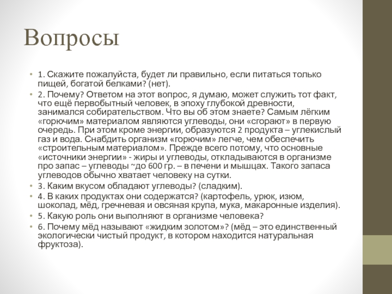 1. Скажите пожалуйста, будет ли правильно, если питаться только пищей, богатой