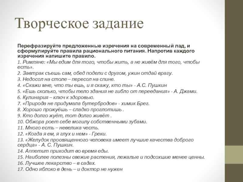 4. «Скажи мне, что ты ешь, и я скажу, кто ты» - А.С. Пушкин