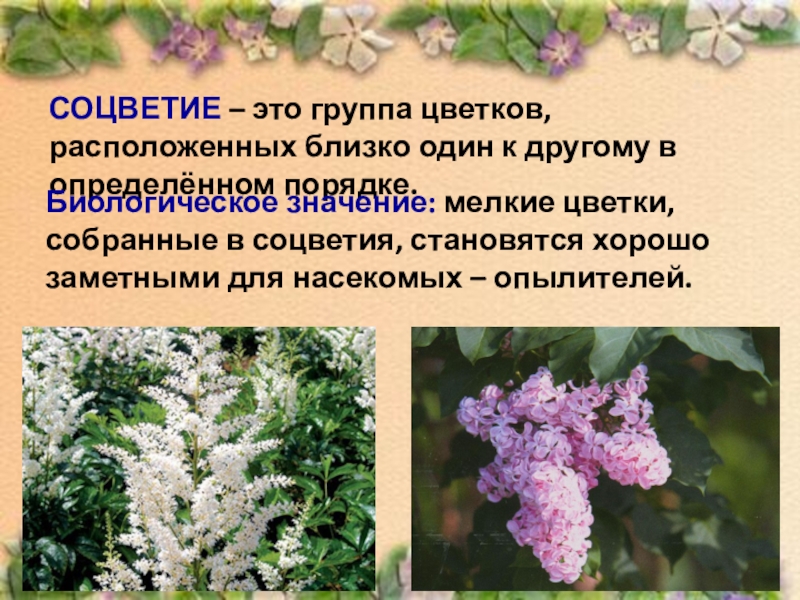 Биологическое значение: мелкие цветки, собранные в соцветия, становятся хорошо заметными для насекомых – опылителей.