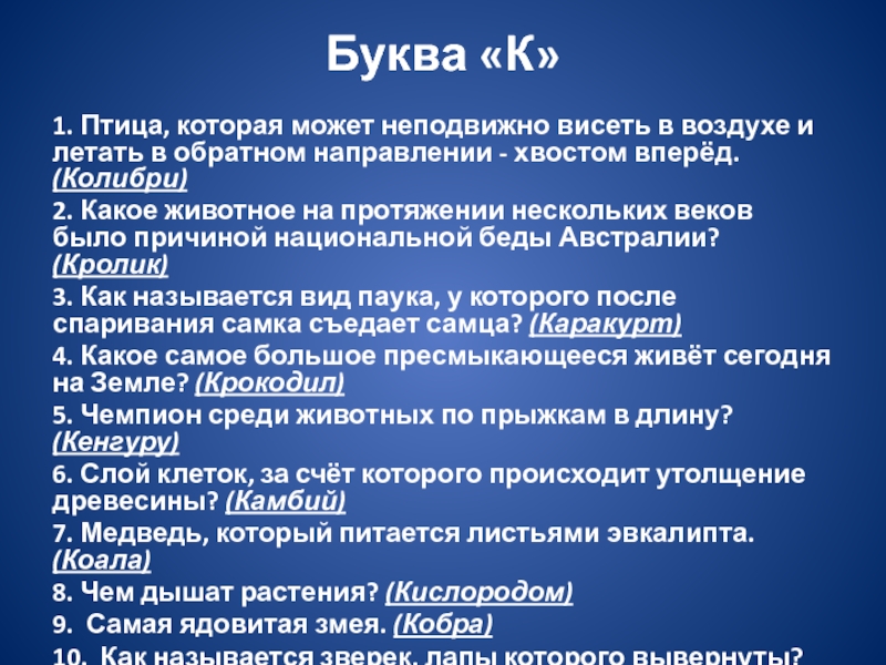 5. Чемпион среди животных по прыжкам в длину? (Кенгуру)