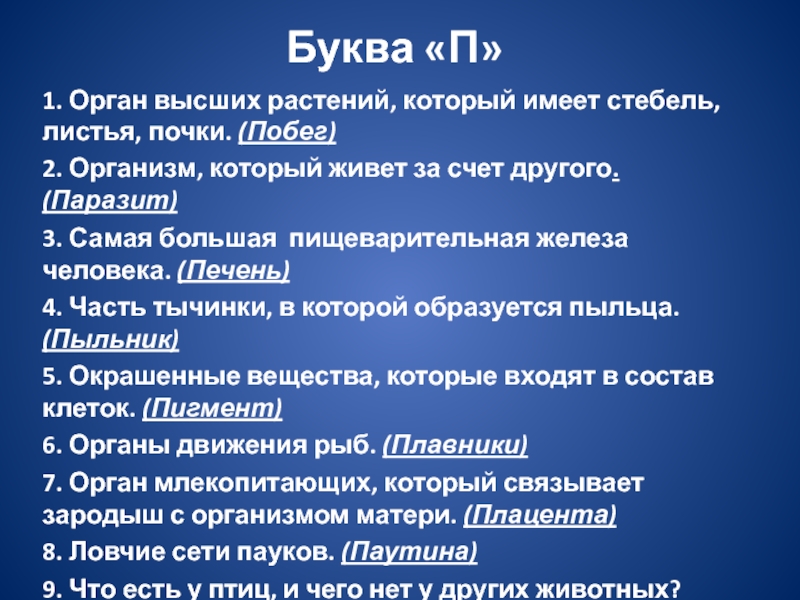 9. Что есть у птиц, и чего нет у других животных? (Перьев)