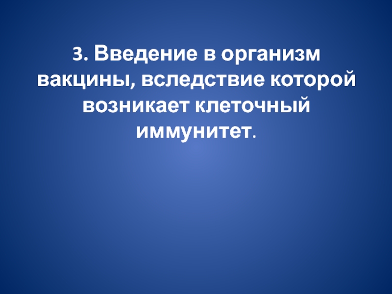 Слайд 443. Введение в организм вакцины, вследствие которой возникает клеточный иммунитет.