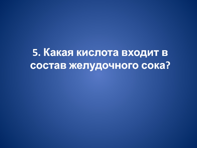 Слайд 375. Какая кислота входит в состав желудочного сока?