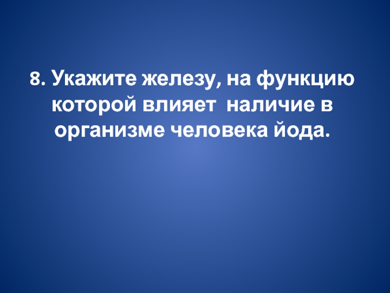 Слайд 498. Укажите железу, на функцию которой влияет наличие в организме человека