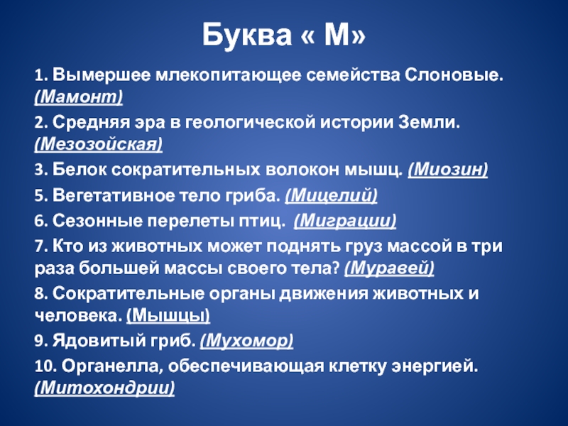 10. Органелла, обеспечивающая клетку энергией. (Митохондрии)