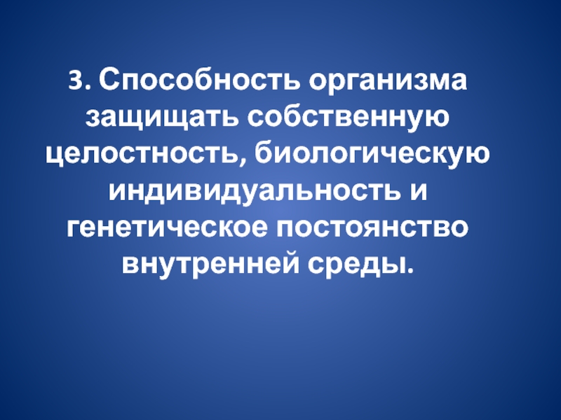 Слайд 353. Способность организма защищать собственную целостность, биологическую индивидуальность и генетическое постоянство