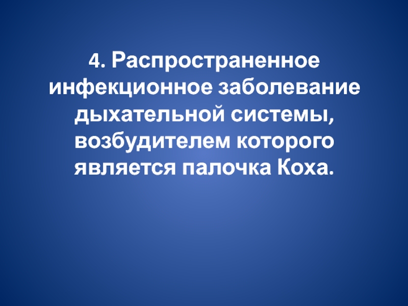 Слайд 544. Распространенное инфекционное заболевание дыхательной системы, возбудителем которого является палочка Коха.