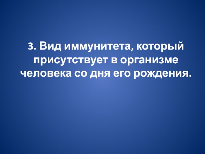Слайд 623. Вид иммунитета, который присутствует в организме человека со дня его
