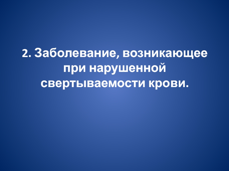 Слайд 252. Заболевание, возникающее при нарушенной свертываемости крови.