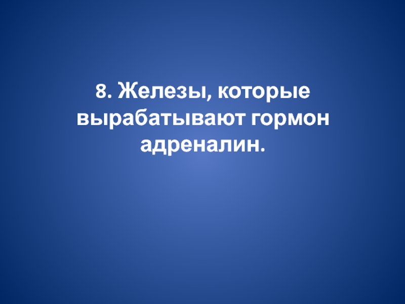 Слайд 318. Железы, которые вырабатывают гормон адреналин.