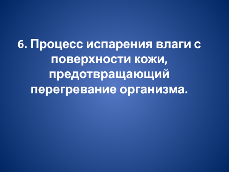 Слайд 206. Процесс испарения влаги с поверхности кожи, предотвращающий перегревание организма.