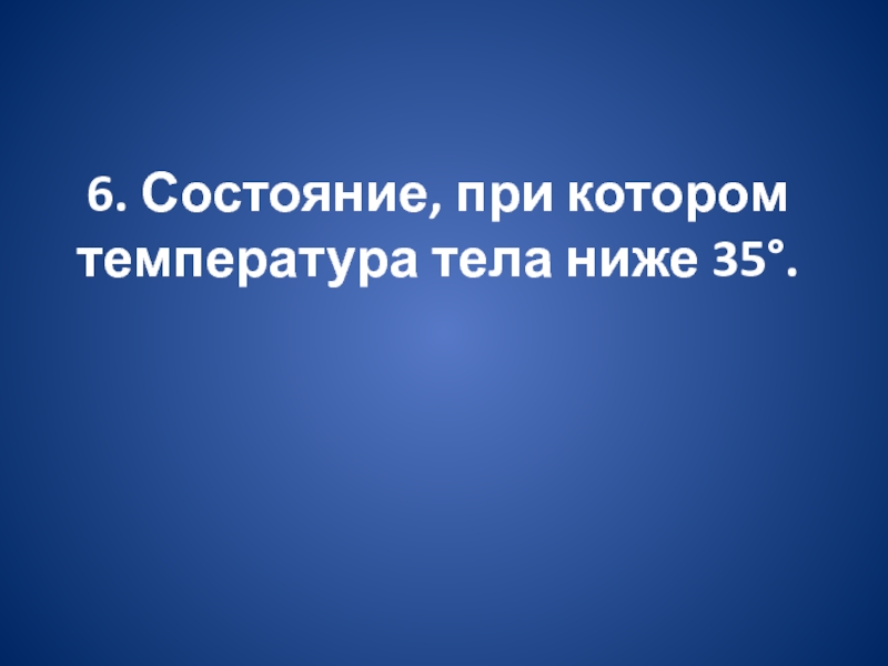 Слайд 656. Состояние, при котором температура тела ниже 35°.