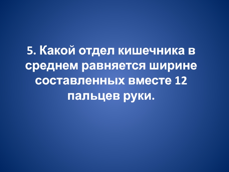 Слайд 645. Какой отдел кишечника в среднем равняется ширине составленных вместе 12