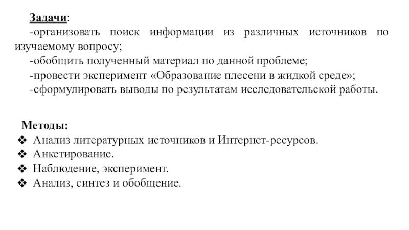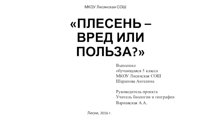 Предмет исследования: факты вреда и пользы плесени в мире людей.