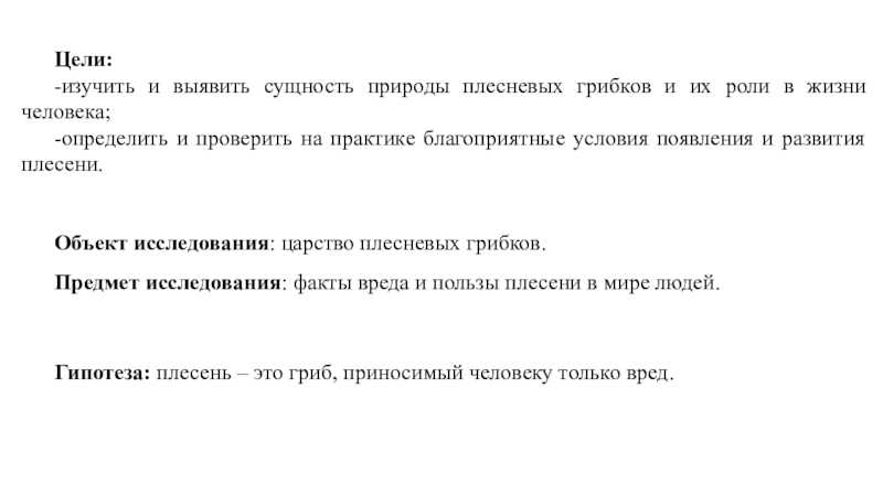 Гипотеза: плесень – это гриб, приносимый человеку только вред.