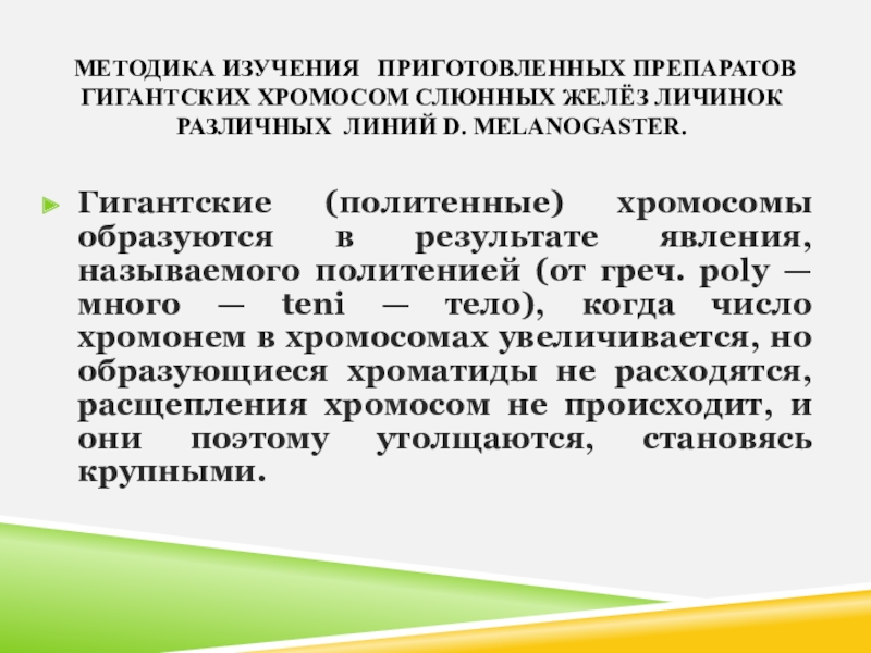Цель работы: познакомиться со строением гигантских хромосом, раскрыть сущность явления политении.
