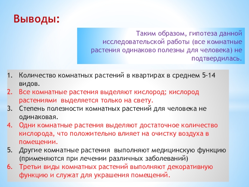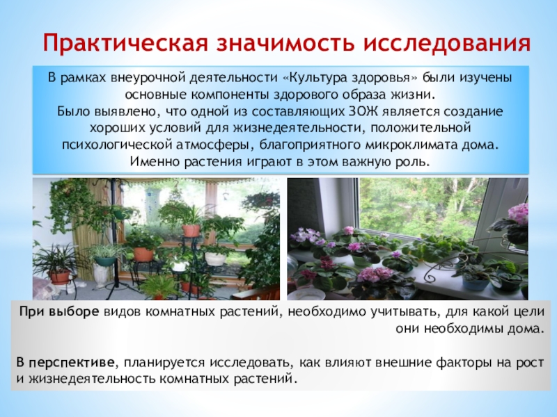 «Выявление роли комнатных растений в жизнедеятельности человека».