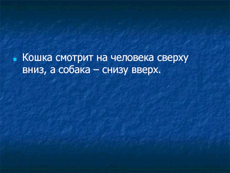 Кошка смотрит на человека сверху вниз, а собака – снизу вверх.