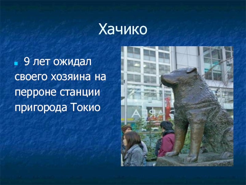 Хачико9 лет ожидал своего хозяина наперроне станциипригорода Токио