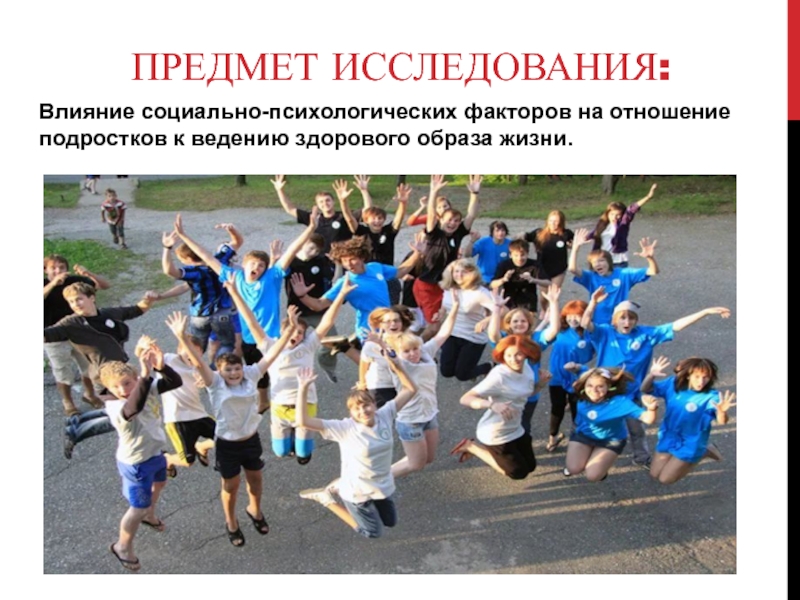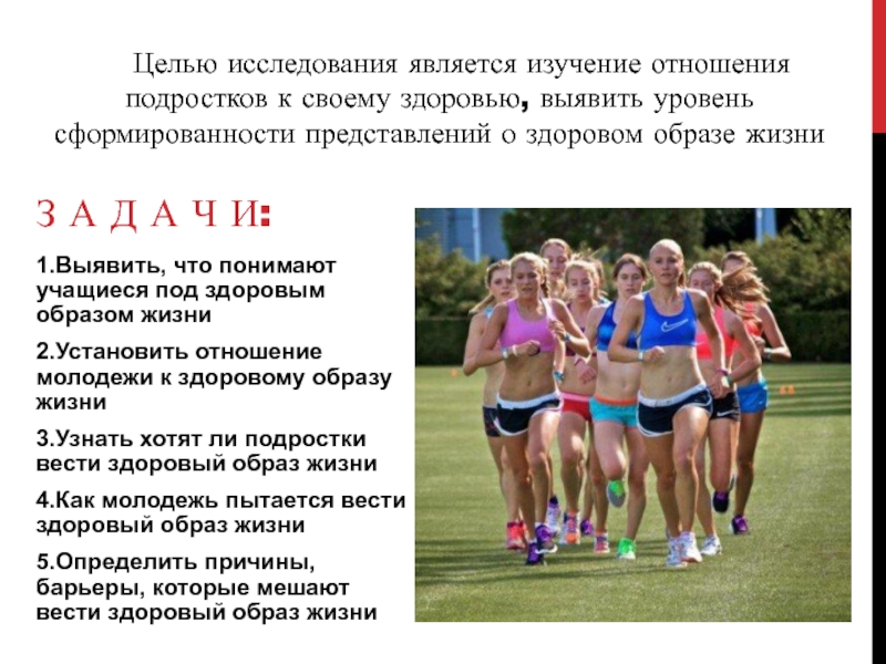 Целью исследования является изучение отношения подростков к своему здоровью, выявить уровень сформированности представлений о здоровом образе жизни