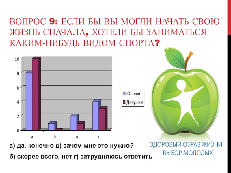 7) Большинство респондентов уверены, что занялись бы спортом, если бы начали новую жизнь.