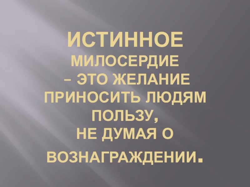 Слайд 4Истинное милосердие – это желание приносить людям пользу, не думая о